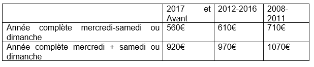 Dates 2025 : 16 mars, 30 mars, 13 avril, 27 avril, 11 mai, 25 mai, 15 juin, 29 juin, 13 juillet, 27 juillet, 10 août, 24 août, 14 septembre, 28 septembre, 12 octobre, 26 octobre.